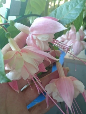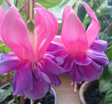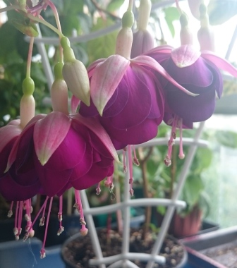 Ну, пчёлке тут ничего не обрыбится - кишка тонка коротка. а вот шмели реально достают. В пору цветения фуксий, на балконе орудует банда разнузданных шмелей. И всё бы ничего, ну опылят, ну ягоды созреют, так фишка в том, что после шмелиной работы цветы уж больно юзаными выглядят - все в мелкое пятнышко от ихих коготков. Да ещё осы здорово хулиганят. До нектара охочи, а лазить в глубине узкого цветка, между многочисленными тычинками лень. Ну так они попросту, перекусывают их, расчищая себе дорогу. Был у меня здоровенный куст обычной, *бабушкиной* фуксии, так на полу под ним груды тычинок и пестиков выметать приходилось, а сами цветки выглядели словно кастрированными. Caspar Houser у меня третье лето. В первое был компактен и цветлив, насколько может быть таковым подросший чер. Во второе лето - в прошлом году - он вырос здоровенным лосём, и цвёл неохотно. Настолько, что думала избавиться от него. Но, поскольку минувшей зимой случился небывалый выпад среди фукс, а сабж оказался среди выживших, то он получил шанс показать себя этим летом. Так что поглядим-посмотрим!