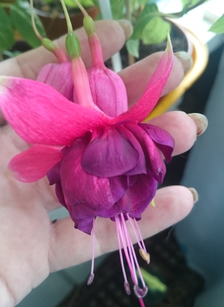 Аха, сорт очень понравился: куст компактный, растёт медленно, цветёт охотно и цветки держит долго. В роспуске цвет юбочки более тёмный фуксиеаый, с каждым днём меняет его ближе в бордо. Хочу его больше)