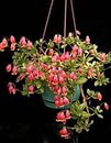 Или вот еще Каланхоэ Мангина Kalanchoe manginii или Bryophyllum manginii. Это ампельное каланхоэ, выращиваемое в подвесных горшках и образующее усыпанные колокольчиками длинные плети. Самое прямое солнце целый день ему не вредит. Цветочки бывают красные, розовые. Размножается, как обычные толстянки, черенками.