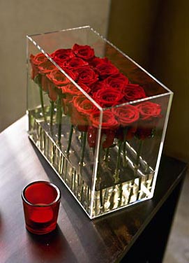18 роз в одной плоскости - это круто. И цвет. И цвет стакана. Лаконично и благородно. Хочется опустить туда нос и вдохнуть запах. Идея простая, но изобразить живьем нечто подобное я вряд ли смогу. У нас роза среднего качества стоит 150 руб. В праздники - 250-300. Так что будем ждать лета, когда материала прибавится и можно будет попробовать разные варианты.