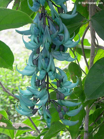 Вот такие бирюзовые цветы подойдут? Это стронгилодон крупнокистевой.