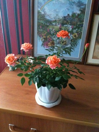 Туле, действительно, красиво оформлена стена на лоджии! И розочки ваши таких приятных тонов! А розочка в вазочке, в центре которая (розовая с персиковой серединкой) - это уже домашнее цветение?