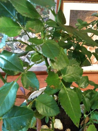 вот роза из уценки, на листьях сухость, думала, что это механическое повреждение.. посмотрите, пожалуйста, опытным глазом..а то может лечить ее нужно