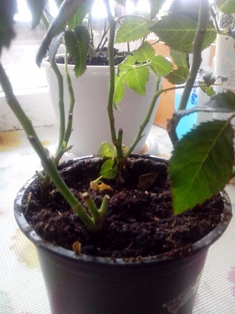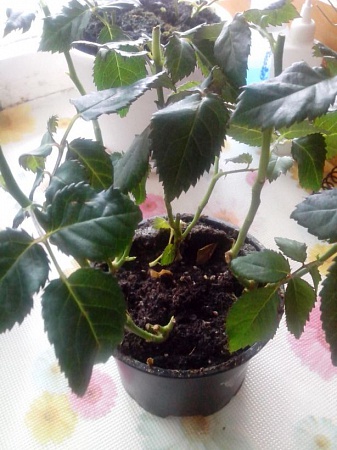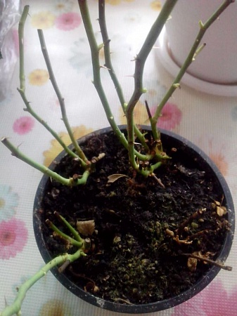 Купила сначала 1 розово-оранжевую розочку Кордана, земля очень сильно полита, на улице мороз, домой несла в пакетике, который засунула в расстегнутую куртку. Ночью все нижние листья опали. Розочка была отцветшая, на ней оставался один цветок, который через 2 дня начал гнить и 1 бутон, который так и не распустился. Я его срезала через неделю. И было много почек, которые как бы замерли. Розочку обрезала, и уже через 2 дня почки стали больше, а еще через несколько дней появились листочки. Я ее перевалила в чуть больший горшок, и она опять замерла. Поставила в пакет, раз в день проветриваю.