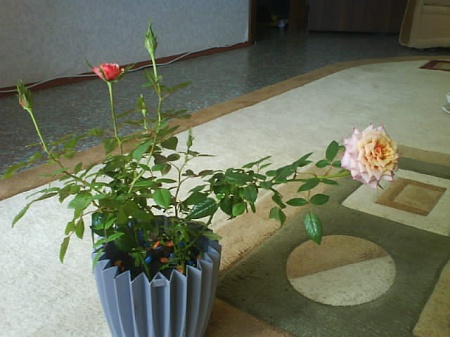 А у меня дома уже месяц роза плетистая на подоконнике стоит . И ничего так, нравится ей вроде дома. Купили ее в сад, чтоб арку обплела, но холодно было еще, чтоб высаживать, ночью минус бывал. К тому же местные деревья в то время еще даже и не думали листья пускать. Ну, думаю, постоит дома, пока листики не появятся на уличных растениях. Только улица начала зеленеть, на розе бутон начал раскрываться. Уговорила МЧ, чтоб все цветение дома простояла, т.к. я в движении временно ограничена (как в кино: шел, подскользнулся, упал, гипс. от кончиков пальцев, до середины бедра ) и не могу так же кропотливо присматривать за ней и в саду. Сейчас на ней второй бутон раскрывается. А вчера обнаружила еще 3 масеньких бутончика на новых веточках. МЧ был в шоке))) , но настроен решительно высадить цветок в ближайшие выходные . Вот так привыкнешь к цветочку, взлелеешь, выходишь, а потом чуть ли не отбирают... Думаю надо в замен какой-нибудь новый цветок выпросить