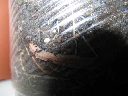 Luthik, в открытом грунте черви не едят "живых" корней, а вот в горшке - могут перейти на "живой" корм, так как пищи для них мало в замкнутом пространстве, и они начинают повреждать корни... лучше выкиньте его на газон, пусть гуляет