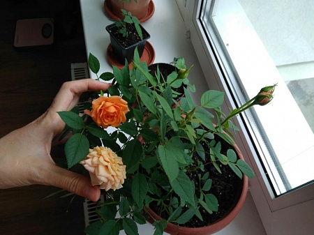 По аромату еще забыла написать, обе розочки пахнут, красная пахнет розой, аромат слабый, но есть. Оранжевая пахнет розой с фруктами, при чем то персик слышу, после обеда что-то цытрусосвое улавливается. А подруга моя сказала что ей ни одна не пахнет, я удивилась, оранжевая имеет явный аромат. Читала что девочки пишут некоторые что у них инфинити не пахнут, так вот у моих гибнущих даже листья пахнут...
