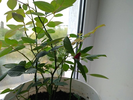 Вторая красная на последнем фото, если это можно назвать розой, что-то странное растет, листья хлорозят, вытягивается и выдала такой "бутон".