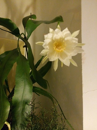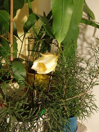 Только вчера наблюдала потрясающее зрелище - распускалась Царица ночи. Два огромных ветка с сильным ванильным запахом. Сегодня утром вся эта красота увяла.