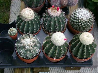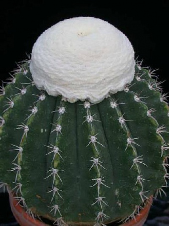 Затрудняюсь ответить, так как список на крупные растения я так и не успела тогда получить, по ранее указанной причине. А поставщик всегда присылает фото предлагаемых растений для разжигания интереса. Из Мело. с чисто-белым цефалием есть Melocactus glaucescens, но тот, что на фото более похож на Melocactus peruvianus (но я не знаю достоверно, если с чисто-белым цефалием,) у них цефалий бело-розовый. Хотя существуют гибриды. Посмотрите семена у Меза Гарден, он обычно дает дополнительные сведения . Сеять Мело. легко. Они хорошо всходят при высоких 25-35 гр. температурах. При более низких какая всхожесть сказать не могу, так как дома очень жарко. Самым быстрым, для получения цефалия считаю M.matanzanus (правый на последнем фото), но лет 6-7 все равно придется подождать. Хотя есть люди, (правда живут на Черноморском побережье), которые выращивают Мело. с цефалием уже на 4-5 год после посева. Но там климат для них подходящий - тепло и влажно.