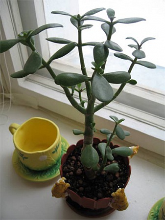 Это толстянка только другая разновидность она просто с большими круглыми листьями. Елена![B]А вот у меня есть еще одна толстянка с деткой одной.Как вы сделали что у вас их так много(деток) и я не знаю отсоединять мне мою детку или не трогать растение оставить все как есть?Подскажите плиз!