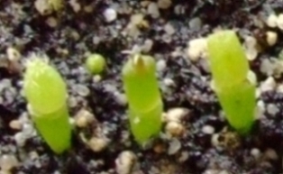 Если двухмесячные сеянцы Aztecium до сих пор по размерам едва отличимы от песчинок, не говоря уже о том, что и корешок у них едва видно под лупой.