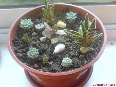Я неделю назад оторвала несколько маленьких черенков эчеверии у брата моего мужа, посадила в землю для кактов в перемешку с песком и углем, через пару дней грунт чуть увлажнила.