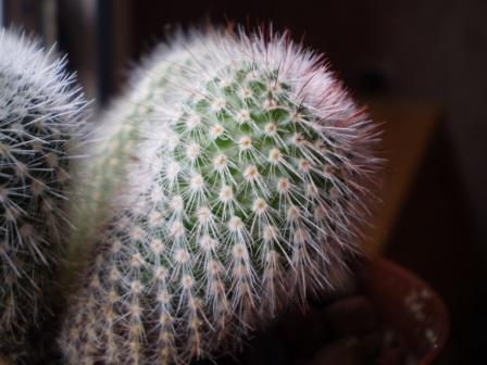 Я большая поклонница кактусов, но вот один есть у меня неизвестный. У него то-ли оранжевые, то-ли красные колючки. Пока еще не разу не цвел. Помогите, может кто нибудь знает как его зовут.