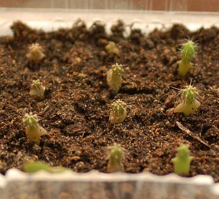 8.02.08 была посажена смесь "Кактус элита". Взошли почти все. Потом я их пикировала, хорошо шли в рост. Такими они были