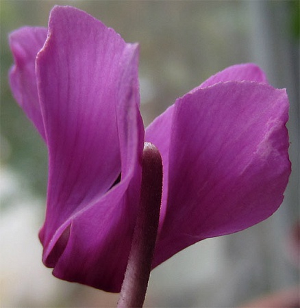 У меня "бабушкин" европеец раскрыл последний цветок в этом сезоне. Цвет получился очень тёмный, а запах не особо приятный. Я заметил, что запах и насыщенность окраски у европейцев сильно зависят от условий содержания. Весной и в первой половине лета цикламены пахнут сильнее и приятнее, чем осенью. А летом у моих цветки выгорают почти до белого цвета.