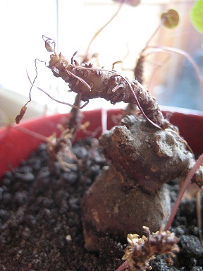 Я тоже никогда не отделяю отростки не имеющие собственных корней. Этот опыт был первый,но удачный. У" голландца" круглый клубень, точки роста растут только вверх. Не знаю сколько должно пройти времени для того чтобы он приобрёл такую неправильную форму как у "нашего" и оброс пальцами со всех сторон. Растение которое я получила в результате деления находится у одной из наших форумчанок. Я просила её сообщить мне, какую форму приобретёт клубень в последствии. Будет он стемиться принять круглую форму или начнёт разрастаться в разные стороны. Надеюсь, что она поделится с нами.