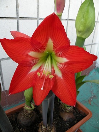 У бабушек можно купить что-то подобное, гибрид на основе Hippeastrum breviflorum.