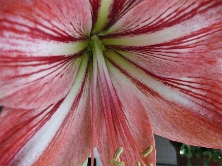 сначала я думала, что это Popov... а ведь не он... вроде форма цветка другая, нет завихрений в горле, белые полосы на верхних лепестках почти смазаны, цветки смотрят в стороны а не вверх... да и зацвели сначала два цветка, а несколько позже уже оставшиеся... из всех похожих я остановилась на Razzle Dazzle, го не нашла фотографии этого гиппа с хорошо видимым горлом.. не знаю, есть ли у этого гиппа бит.... короче, сплошная кутерьма