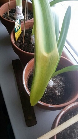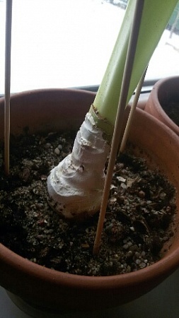 Иринка A.,Вот первые 2 фото,луковичка 14 см в диаметре.Второй листик нормальный.3 фото,это то что осталось от луковки выше.У нее внутри ожог,пришлось все срезать и вырезать,т.к.у меня небыло ничего кроме медного купороса вымочила в нем,посушила и побелила противогрибковой побелкой.Сечас стоит в тени,но в самом жарком месте.Не знаю правильно ли я сделала.Сердце кровью обливается