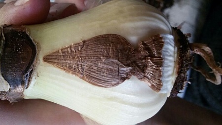 Есть у меня такая вот лука, недавно процветший Showmaster. Листья стали расти и получились как сожженые чем то. Я их срезала. Но вот мне не нравится шейка. Может расковырять и Максимом замазать или ничего страшного?