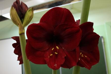 Оба гиппа, 'Benfica' из ОБИ и 'Black Pearl' из МУ, цвели одновременно, 'Benfica' - второй или третьей стрелкой (не помню), а 'Black Pearl' - первой. 'Black Pearl' казался намного крупнее, прямо гигант, и намного темнее, в черноту. На фото четвертый справа 'Benfica', третий слева - 'Black Pearl'