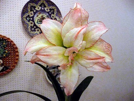 Интересный сорт, цветки ещё не полностью раскрыты, хотелось бы его увидеть в полном роспуске, чтобы горлышко было видно. И ещё - что это за керамика, узоры и в центре всадник воюет с драконом? И вторая, снизу, жаль, не оч. хорошо видно ?