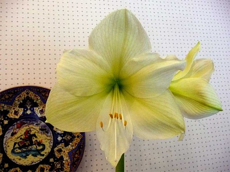 Это типичный амбианс - я перед тем выставляла фотки своего громадного красавца - в хвастовстве 2011. Это цветет последняя стрелка и последний цветок доцветал. когда цветок доцветает, перед увяданием он становится бледным. видите соседний уже начал увядать.