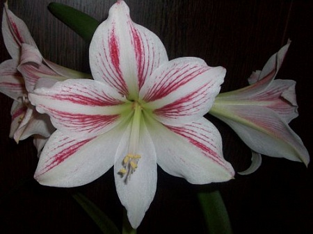 Вроде вот этот у Вас: Hippeastrum vittatum Гиппеаструм полосатый, посмотреть фотку можно тут