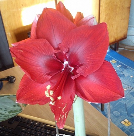 - бутоны темно-красные, от центра лепестков к горлу - темнее, почти бардовые, размер 15 см.;
