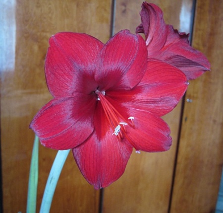 Прошу помощи в опознании: стрелка высотой 50 см. с легким загаром, имеется "ожерелье", завязи и цветоножки тоже с загаром (при расчехлении загар был интенсивнее), цветок около 14 см. в диаметре, цвет между темно-красным и вишневым с фиолетовым отливом, как-то так... Текстура лепестков гофрированная. Запаха нет.