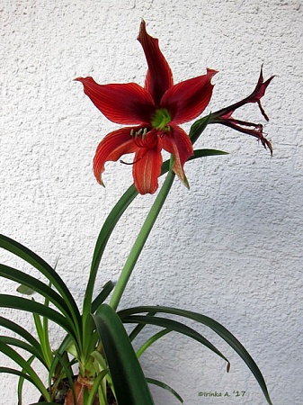 Дабы, хоть как-то скрасить разочарование(я реально полагала, что цветения теперь не видать мне до весны 18года), и в первой половине апреля пересадила луку в свежий субстрат, за одно увеличив размер плошки.....