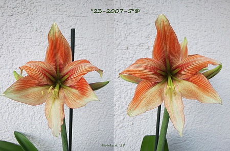 Гелла написал: Насчет различий , нашла : у левого 23-2007-5 , красная каемка по краю лепестков а у правого нет? Ну и на разной стадии роспуска поэтому форма разная)