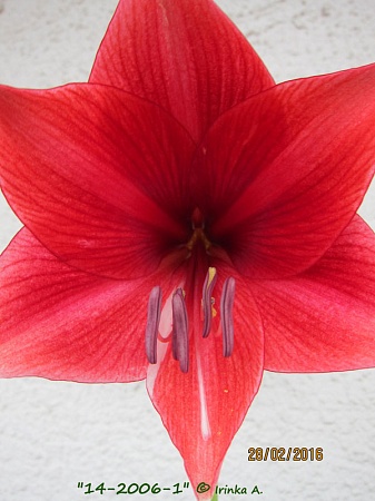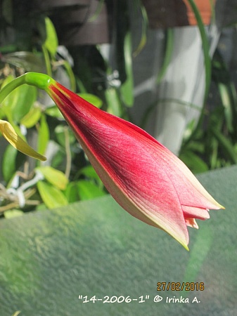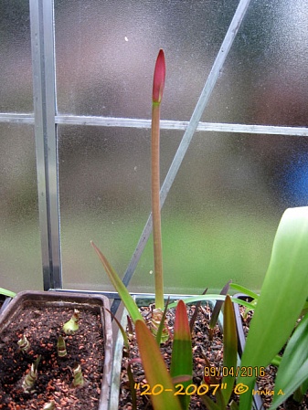 Первое цветение новых двух сеянцев ToscaХShowmaster. Ну, сразу понятно, кому всё внимание достаётся. Поэтому говорить буду об одном. Цвет очень яркий, насыщенный, я бы сказала, спелая вишня, но не тёмная. В бутонах сразу видно, чей потомок (на одном фото бутончик правильно получился), а так многовато красного на фото, невозможно было поймать правильный цвет. Цветы 19 см, луковица некрупная. И ещё, у него рыльце фиолетовое!!! Правда, я это только на фото заметила. Впечатление - красивее родителей. Иринка, ну как, теперь есть надежда, что что-то интересное получится? Ждём твоих!