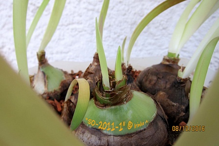 Более того, сама себе удивилась, когда луку решила пересадить в свежий субстрат, за одно увеличив на два порядка и размер банки. И сомнение таки грызли в правильности своих действий, помня его первое цветение, но плошку на батарею поставила, забыв на недели двe.