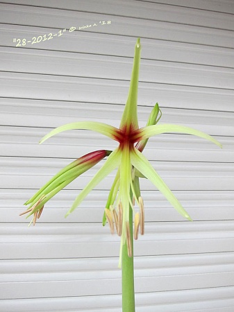 Солировал, сеянец Анджело Порцелли, в первом цветении: Hippeastrum aulicum Х Hippeastrum рapilio(♂) var.4