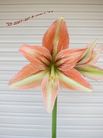 Цветонос высотой 50см., цветы диаметром 19см, вертикаль 21см., присутствует слабый запах терпкой горчинки.