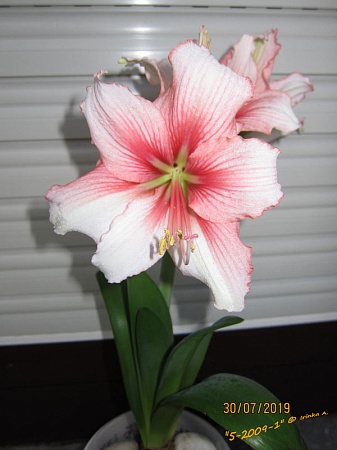 Удивил он меня, конечно, так удивил! Я думала, растение, сентябрьским цветением "отстрелялось" до следующего сезона, а тут, занося с балкона, в первых числах ноября чуть не сбила ему 5 см. стрелку, над которой нависала ботва...