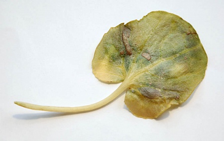 Помогите, пожалуйста. В феврале подарили цикламен, вроде все в порядке было, но я его так и не пересадила - побоялась во время цветения. Подкармливаю. Сейчас отдельные листики стали желтеть и на обратной стороне какие-то сухие пятна. Бляшки такие... Кто это? И как от него избавиться