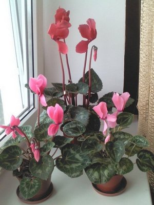 Доброго времени суток, дорогие цветоводы! Подскажите пожалуйста, что с Цикламеном? Купил его месяца полтора назад, цветок был очень крупный и очень красивый, и вот спустя некоторое время он медленно но уверенно начал уменьшать размеры новых листиков и цветов. Окраска цветов стала блеклой, а позже еще ко всему начали желтеть листья и подсыхают некоторые молоденькие новообразования цветов. Условия содержания вроде бы нормальные, температура воздуха +20-+21, поливаю с поддона, полив умеренный. Периодически добавляю жидкие мин.удобрения. Вот фото: Чего ему не хватает? Или это адаптация цветка к домашним условиям.(судя по размерам цветков и листьев, в теплице его очень хорошо пичкали химией:huh:)