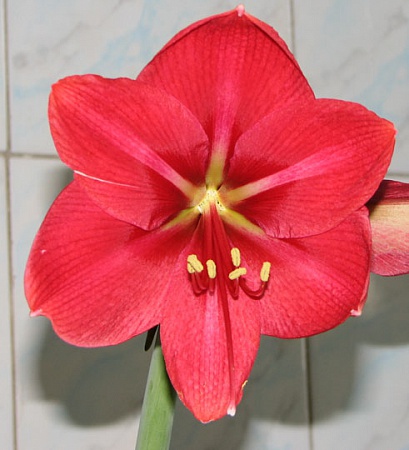 Кетрин, ! Моё мнение такое: Или Hercules - но должен пахнуть и порядка 22см максимальный размах лепестков,розовеет со временем, а вначале как Амиго. И у него почти все бутоны сразу распускаются, а у Вас только один цветочек. Где-то Гелла вывешивала хороший Hercules Или это Telstar - тоже порядка 20-22 см крупняк, но оттенок сразу цикламеново-розовый. Горло очень похоже.