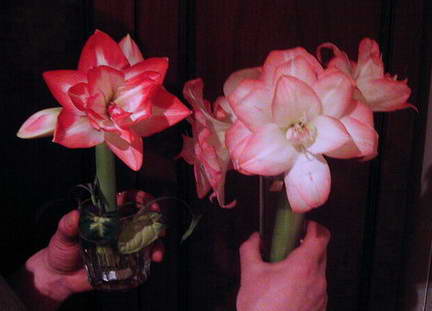 Белочка, правильно! Так их! [img][/img] Не, ну нормально - всё свалить на поставщиков, мол разбирайтесь с ними сами?! Тома, а Вы тоже на запах попробуйте сориентироваться - Блоссом Пиакок - пахнет ! Фотку у себя прошлогоднюю нашла - две стрелки с одной луковицы Блоссома Пиакока такие на первый взгляд разные, имхо.