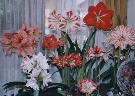 Раз уж мы заговорили о размерах цветков, хотелось бы уточнить: как его правильно измерить? C широко-открытыми сортами проблем нет - это расстояние между кончиками лепестков цветка в максимально раскрытом состоянии (максимально обычно расстояние между верхним и нижним лепестками). А если лепестки сильно отклоняются от вертикали и закручены назад? Посмотрите хотя бы на на фото Gilmar (Иринка А.) в галерее посетителей сайта! Измеряем наружный диаметр цветка или надо выпрямить и распределить закрученные назад лепестки по линейке? Вопрос отнюдь не праздный, т.к. способы измерения дают расхождение в несколько сантиметров. Я измеряю все свои гиппы по наружному диаметру цветка, но всегда есть желание выпрямить лепестки...