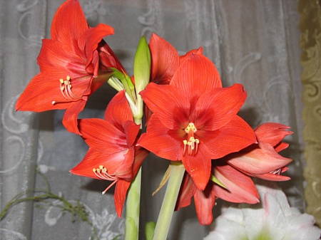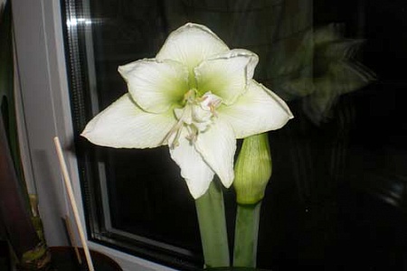 Добрый вечер! Бываю у Вас,но чаще, чтобы просто получить удовольствие. И у меня наконец-то расцвел белый гипп. Я знаю,что белые и красные не...., но может быть он хоть похож на ...