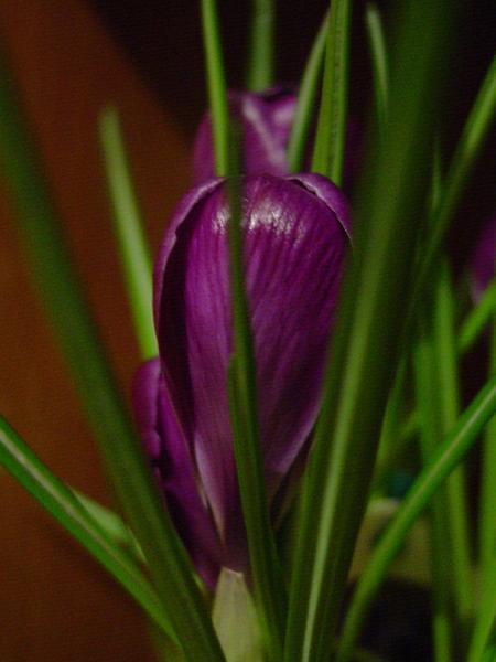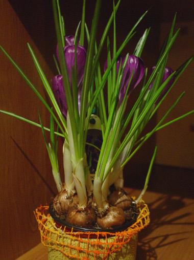К самому новому году у меня расцвели крокусы. На фото - бутончик.