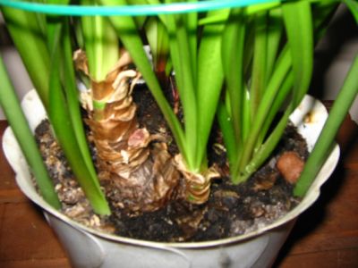Здравствуйте,уважаемые ФОРУМЧАНЕ!!! Помогите советом чайнику! Три года назад,попала мне луковица гиппика,посадила,поливала,подкармливала"семирамидой" На покой не уходила,а я по своей неграмотности-насильно не отправляла. В ноябре2005г. цвела.Один огромный цветонос с 4мя красными,огромными цветками.Почитала ВАШИ статьи и в полном ужасе-какая я садюга!Сижу и радуюсь,а расть может спасать пора?Вот так он выглядит сейчас: