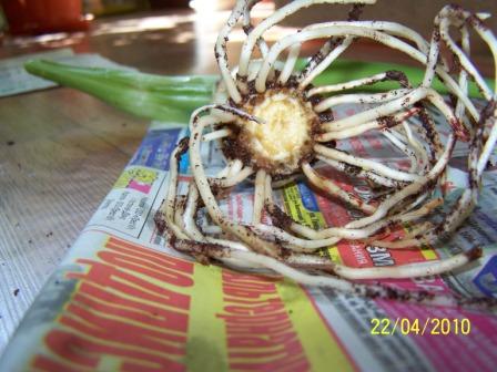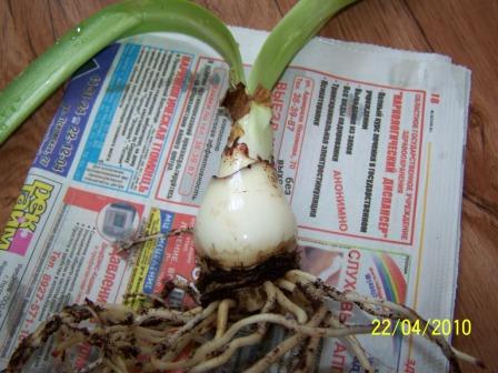 Доброе время суток! вчера на распродаже в магазине купила уже отцветший гиппик. два его листочка подрезаны на расстоянии около 20-25 см от луковки, сама луковка крепкая, каким цветом цветёт продавцы не знают... ну я и взяла попрактиковаться... Сейчас разобрала горшок, а там - полно "пустых" мягких корней и верхние чешуйки мокрые, рваные, вот-вот гнить соберуться.... вообшем почистила, промыла под струёй воды... сушу. подскажите: 1. нормальная ли луковка? (может что-то срезать или обработать чем?) 2. долго ли сушить? 3. надо ли чем-то обработать перед посадкой? 4. как сажать без верхних чешуй? 5. что с ней делать дальше??? отправлять спать? Спасибо большое!!!! жду с нетерпением - вдь луковка рядом со мной лежит.... вот фото: