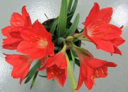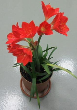 Моя валлота выдала 2 стрелки одновременно. У меня такое счастье в первый раз за всю жизнь валлоты. В прошлые года только расщедривалась на одну стрелу. В середине лета ее конкретно залило дождем в течении нескольких дней, начала подгнивать лука. Я вовремя заметила, вытряхнула из горшка, отделила детей и всех посадила в 2-х литровый горшок. На цветение не надеялась, т.к. валлоту слегка покрамсала и повредила корни. Плюс ко всему она за первые две недели в новом горшке засушила половину листьев. Но барышня на радостях, что я спасла ее луку, решила одарить меня цветением.