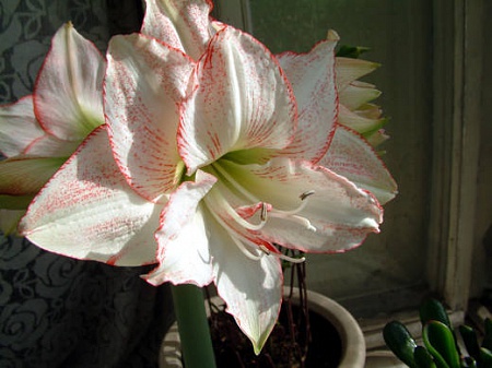 Кстати, у меня почему-то более поздние цветы некоторых сортов (Фаро, Леди Дж.) гораздо меньше первых расцветших. Например, у Фаро первые два цветка были по 18 см в диаметре, а остальные (их 5 на первой стрелке) едва дотягивают до 15. То же самое и с Леди Джейн. Так часто происходит?