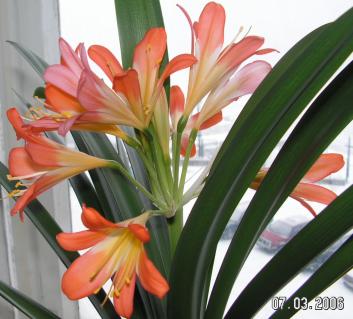 Что мне делать с моими кливиями - ума не приложу Трясусь над ними, а толку ... Период покоя, холодная зимовка - пожалуйста, не тревожить, горшок не крутить - ни-ни. Отдельный горшок, подкорика... И вот благодарность - ни одного цветочка от 4 кливий. А на работе стоит кадушка с кливиями (друг на дружке сидят, просто куча мала) у самого входа, на сквозняке, в пылище, поливают когда вспомнят. А в куче мале всё время кто-нибудь да цветёт.